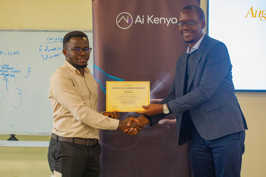 The event concluded with a certificate awarding ceremony and participants left equipped with knowledge, strategies and clear roadmaps for introducing and scaling AI within their organizations. The Augmented Thinking workshop stands as a reflection of Ai Kenya’s commitment to democratizing machine intelligence and fostering a responsible, forward-thinking AI ecosystem across the country.